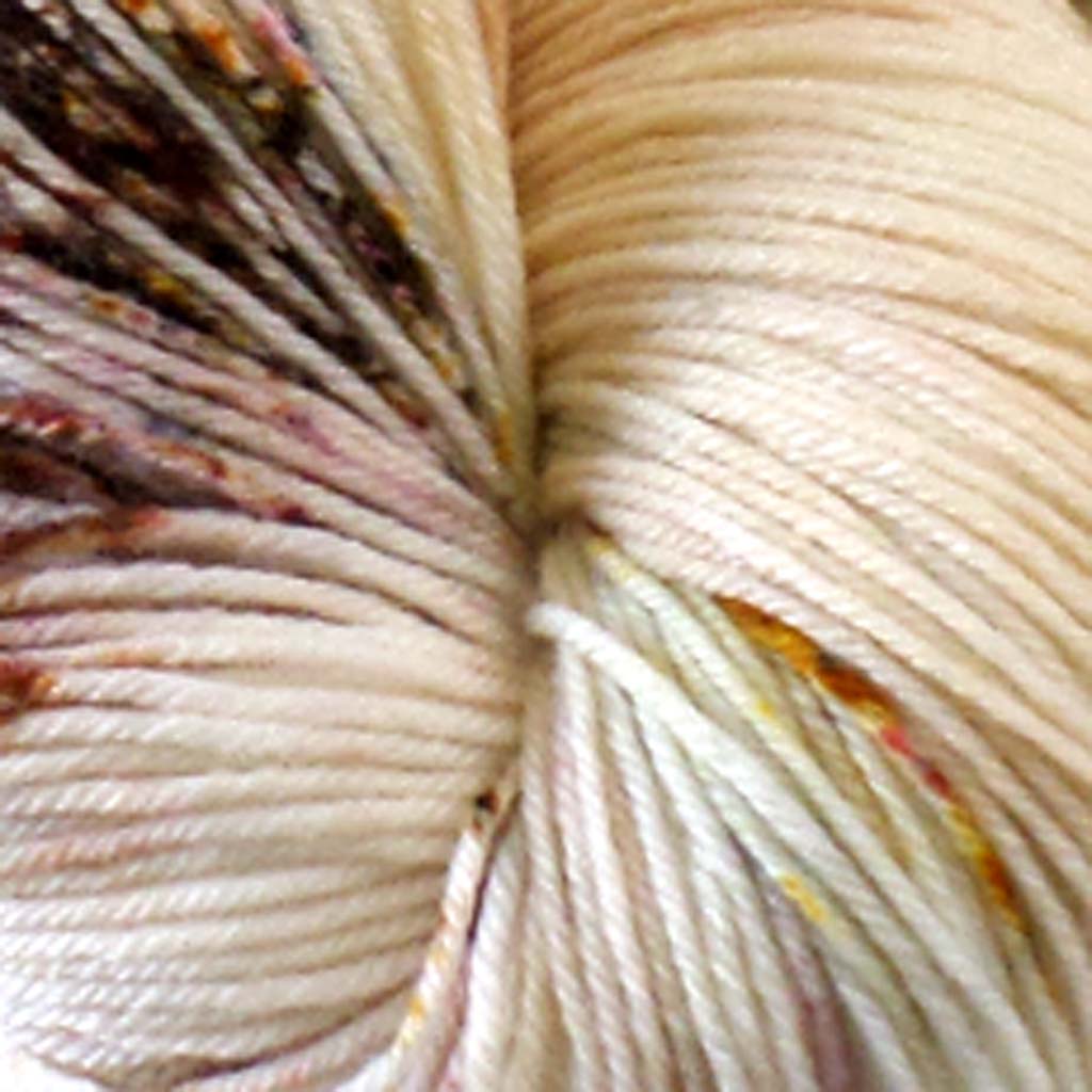This colourway has subtle colours and speckles that you discover as you knit it up. Pale cream and fawn with speckles of gold, brown, magenta and purple.