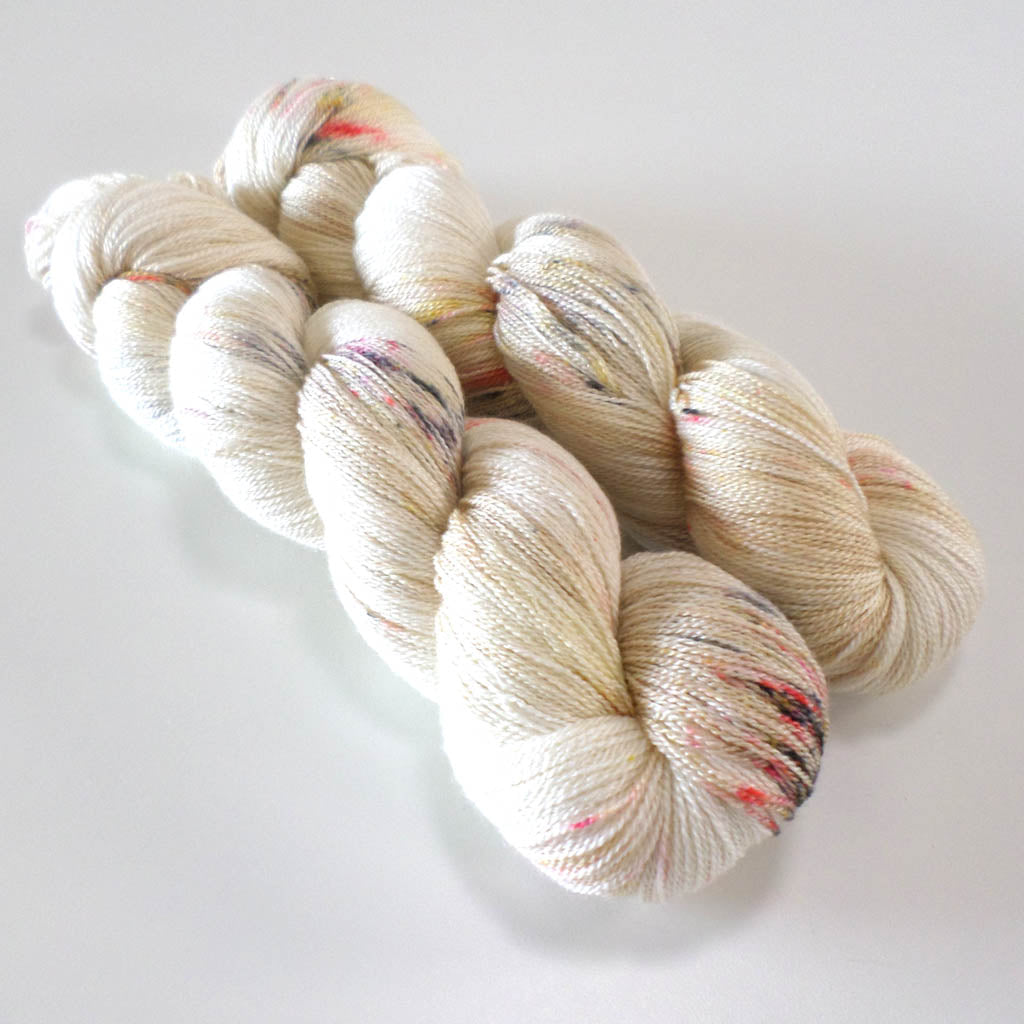 A lustrous combination of silk and merino in equal balance resulting in a super soft lace weight yarn with a lovely drape ideal for shawls, scarves and garments.